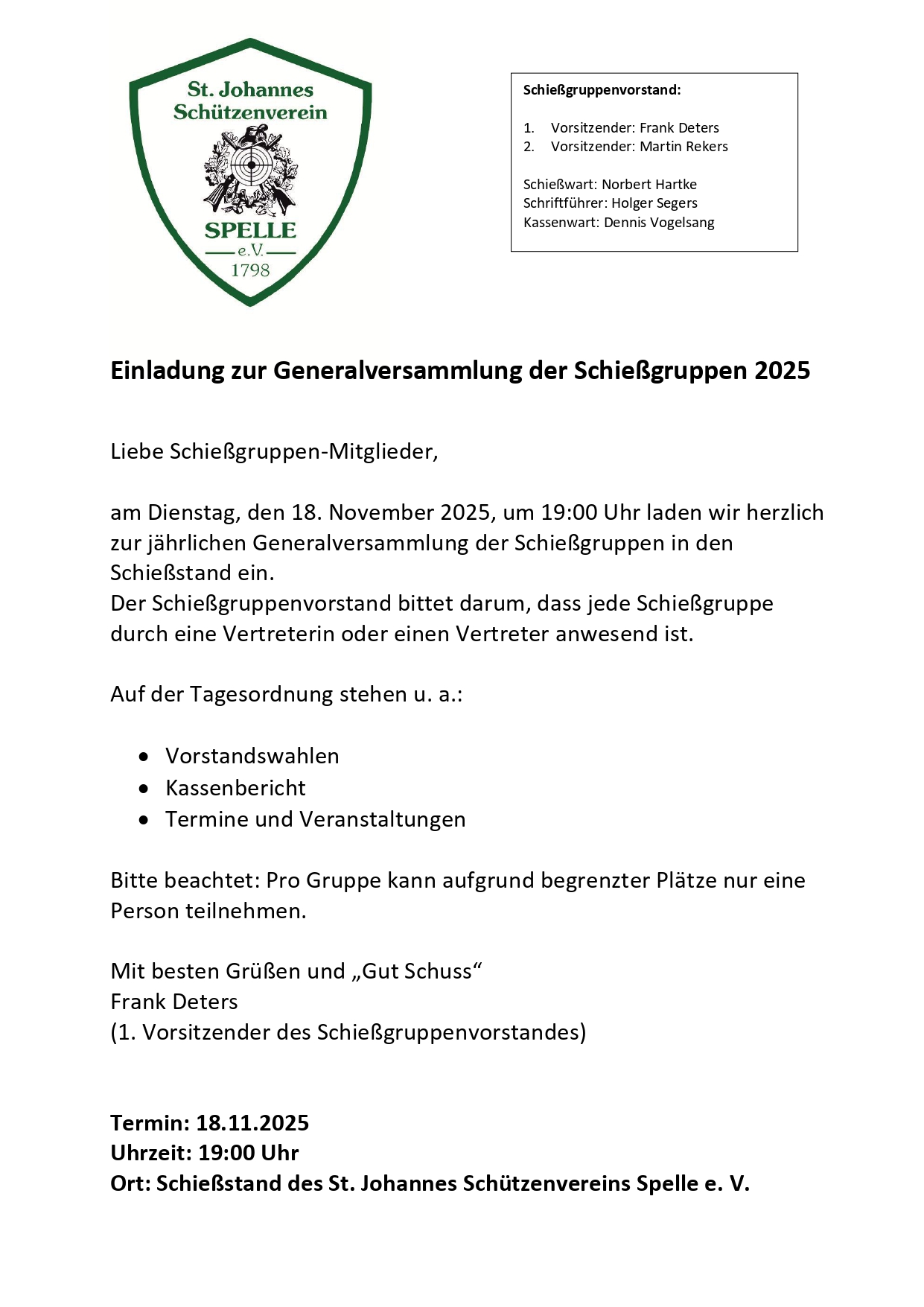 - - - Herzlich willkommen auf den Seiten der Schießgruppen Spelle! - - -